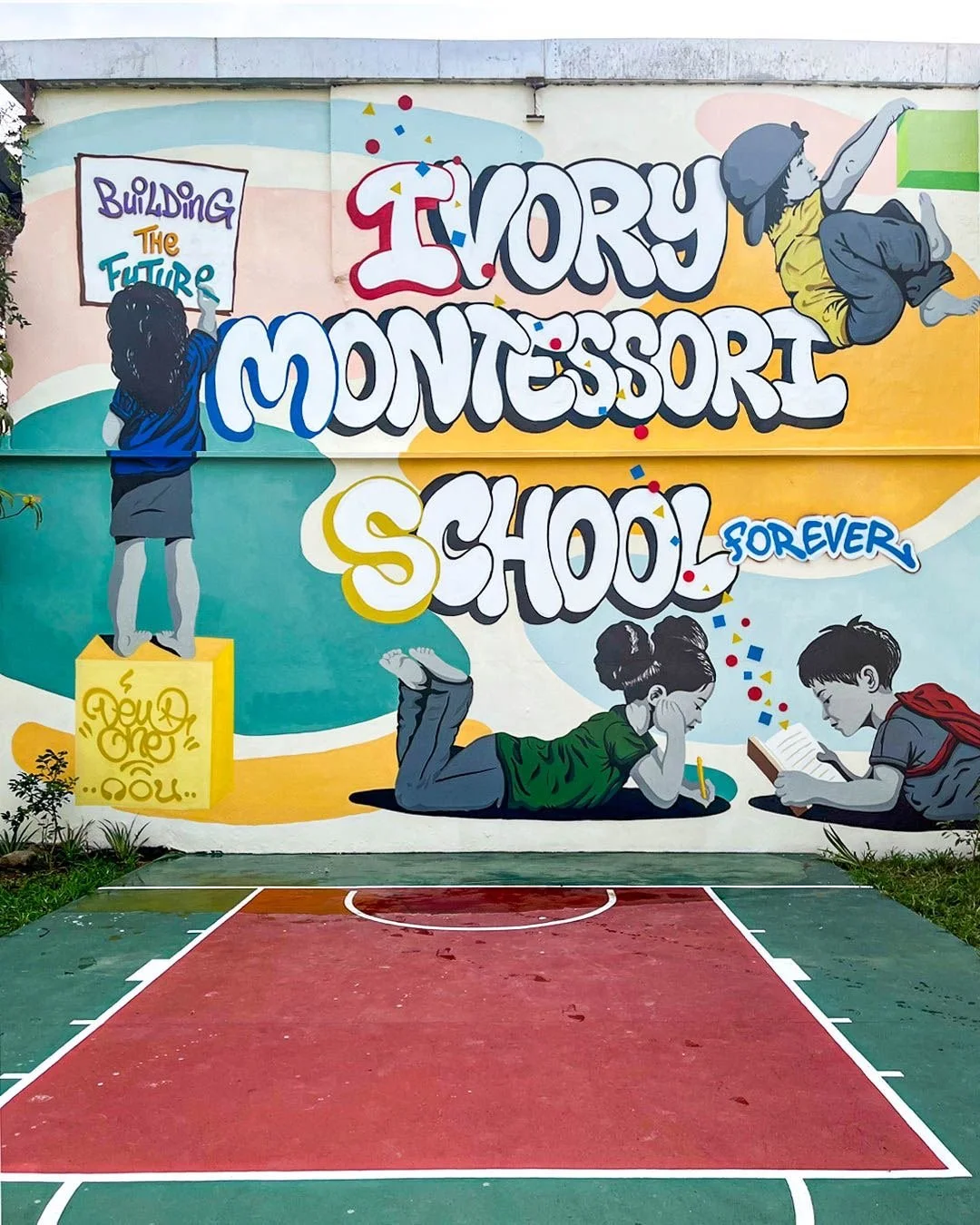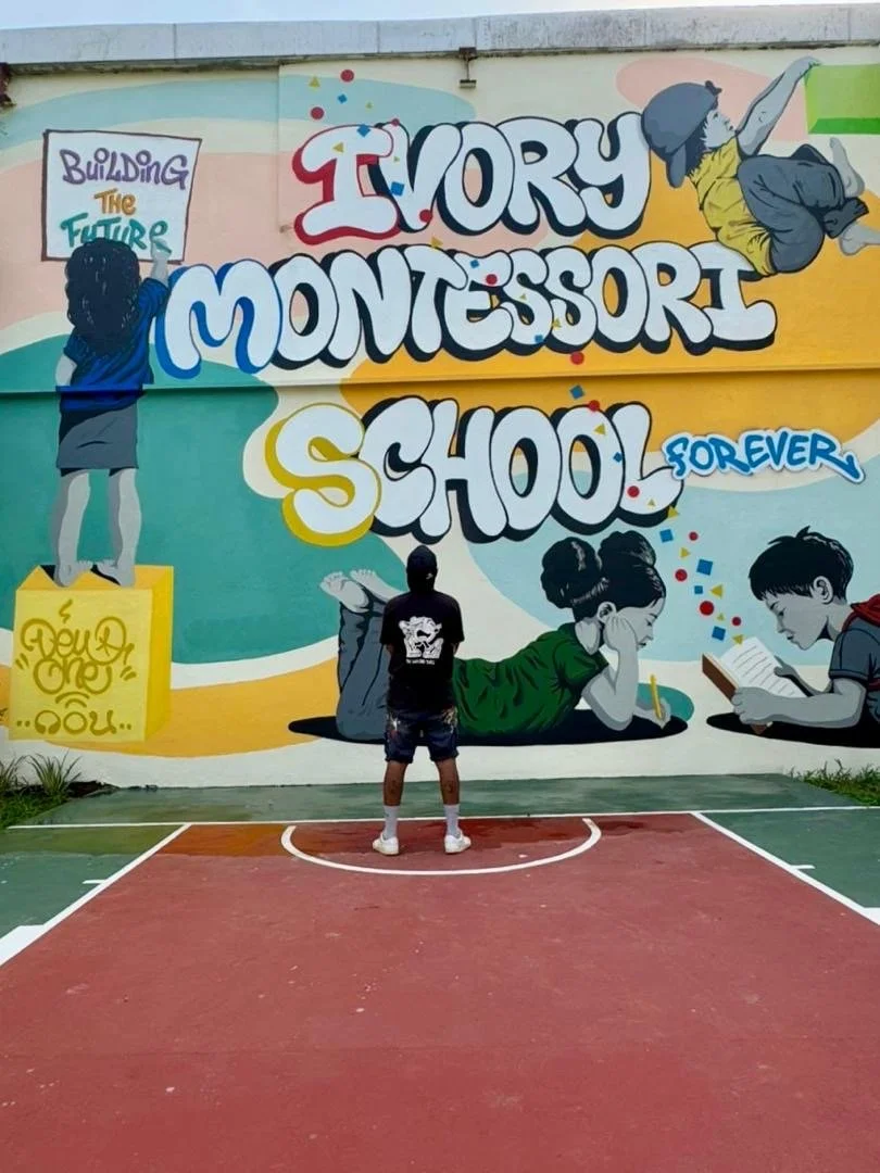 A project I completed in 2025 for Ivory Montessori School in Abidjan, Danga, featuring a wall with an approximate size of 6 square meters.